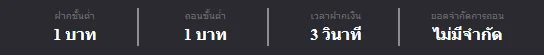 ตอบ : ระบบฝาก-ถอนอัตโนมัติ (Auto): ต้องทำรายการได้เองผ่านหน้าเว็บภายในไม่กี่วินาที ไม่มีขั้นต่ำ สามารถเริ่มเดิมพันได้ตั้งแต่ 1 บาท บริการ 24 ชั่วโมง มีเจ้าหน้าที่คอยซัพพอร์ตตลอดเวลาผ่านทาง Line หรือ Live Chat